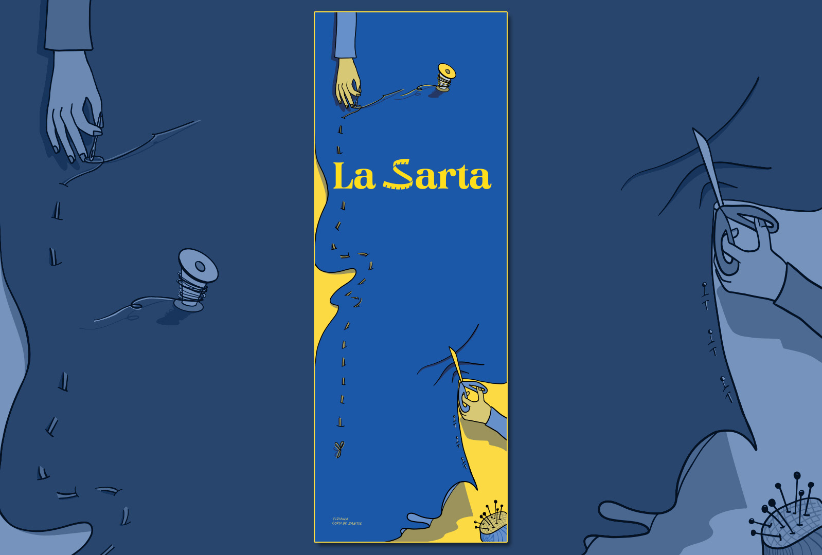 Il marchio "La Sarta" è giallo su sfondo blu, le illustrazioni quindi riprendono volutamente i colori del brand.